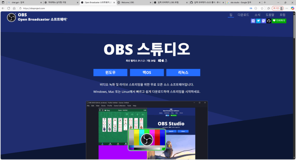 공식 사이트(obsproject.com)